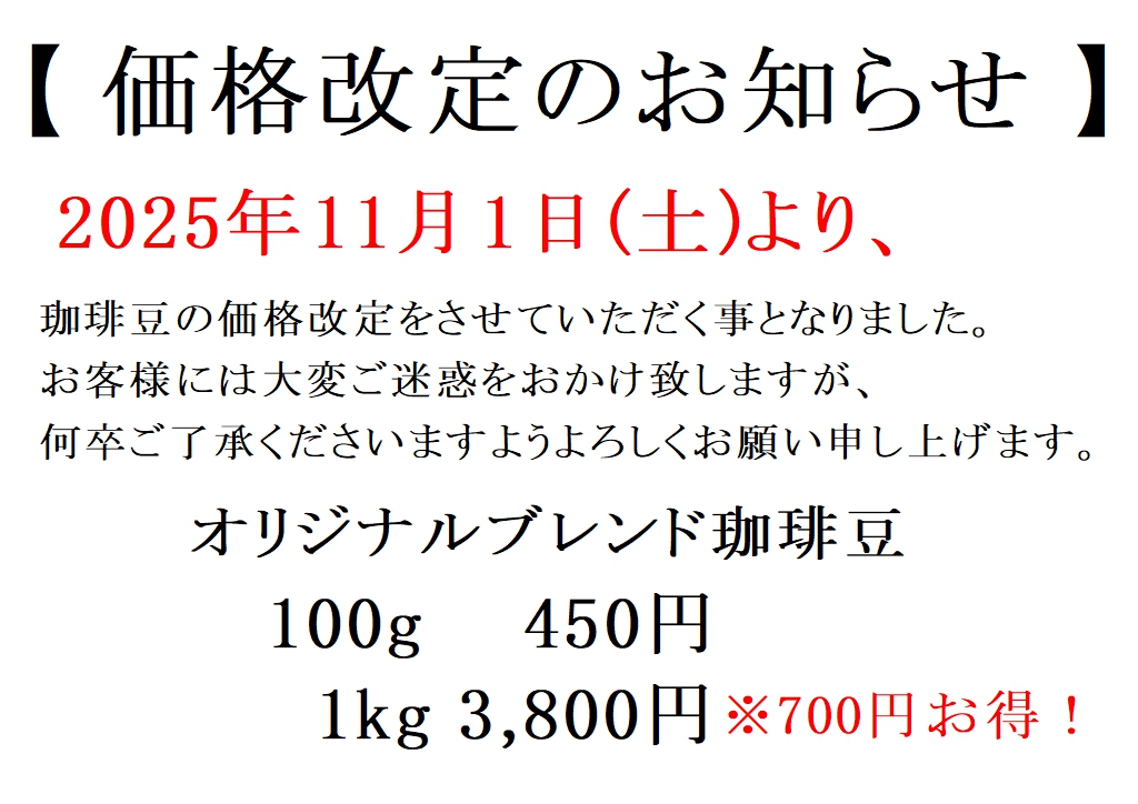 つきましては、誠に心苦しい限りではございますが、2025年11月1日(土)より、価格を改定させていただくこととなりました。